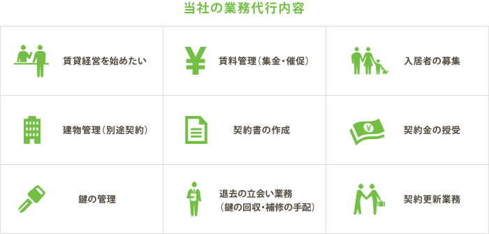 具体的には、新築時や空室が出た場合の入居者募集、入居決定時の契約事務、入居中の賃料の集金、退去時の諸手続きなどがありますが、常にオーナー様の代理でありながら、ご入居者様と直接やりとりを行う窓口であることを忘れず、ご入居者様の満足度を高めることで、長期的な視点から賃貸経営の安定化を図っています。